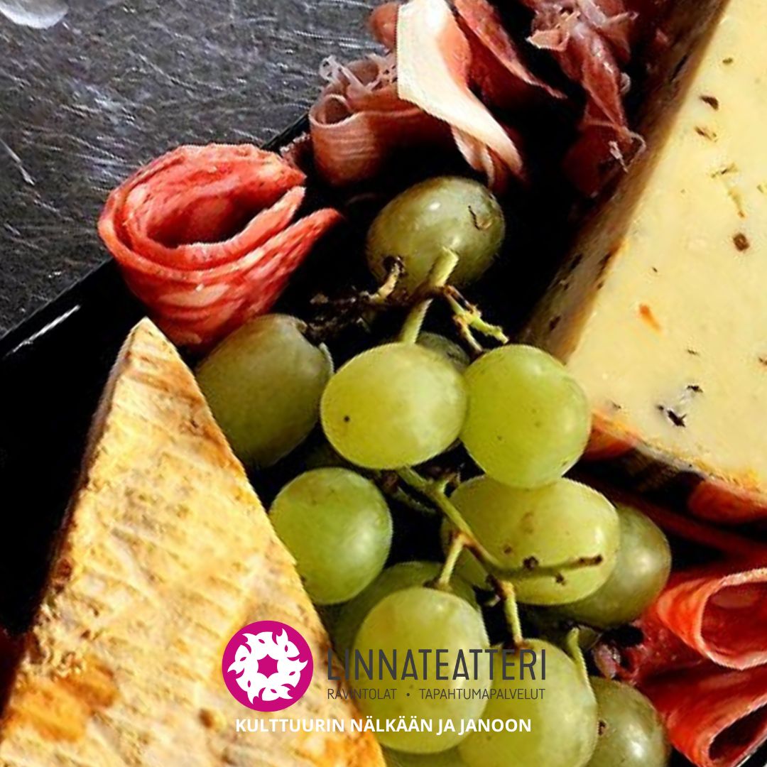 Poksi sisältää mm ilmakuivattua kinkkua, salamia, marinoituja oliiveja, savulohi-wrap,toast skagen-leipänen, Brie-juustoa, Goudaa, keksiä ja aiolia.
