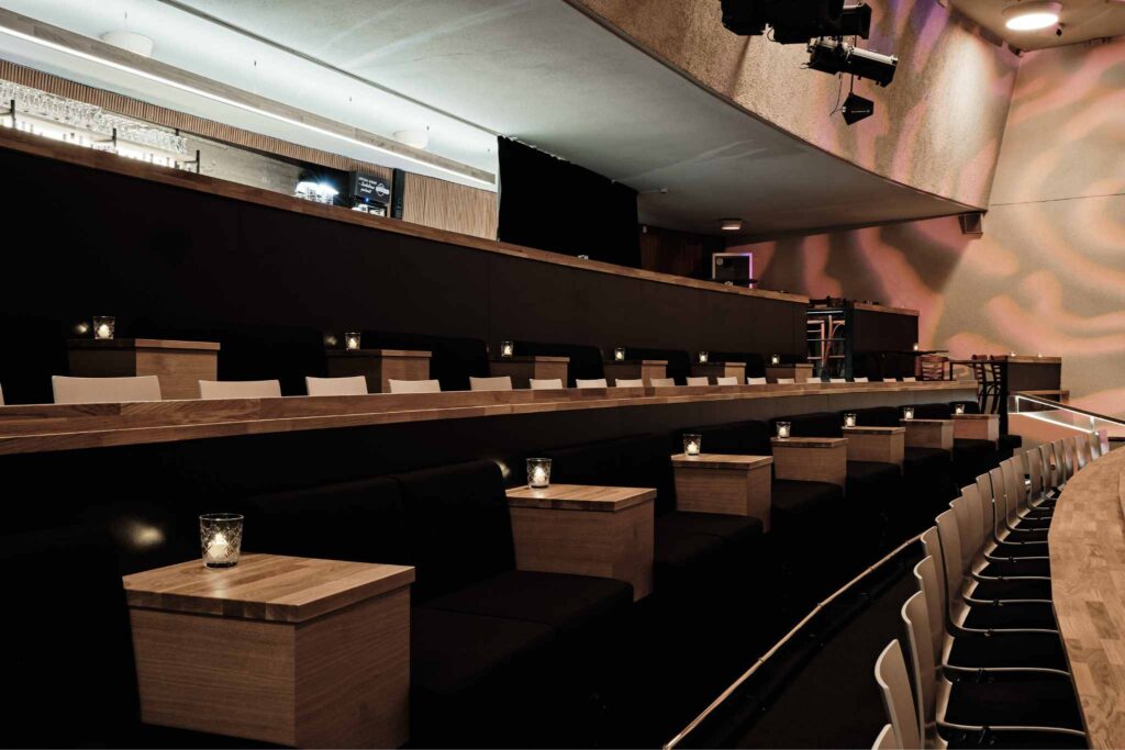 Meillä nautit lasillisen jos toisenkin – ja vieläpä mukavasti omalla paikallasi, esityksen lomassa.